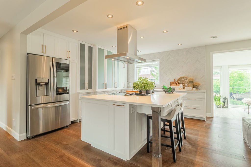 | Addresse: 2215 Rue des Patriotes, Laval/Ste-Rose, H7L2P1, Canada | | Maison de plain-pied à vendre Laval (Sainte-Rose) --- 2215 Rue des Patriotes. DÉCORMAG ! Magnifique demeure ayant reçue une attention particulière pour sa décoration et le choix de la qualité de finition des matériaux (céramique, cuisine, poignées de porte, robinetterie). Maison au concept ouvert avec un immense îlot central, chambre des maîtres de type suite incluant une salle de bain privée, 3 salles de bains avec douche vitrée et plancher chauffant, belle verrière 4 saisons, garage et chambre froide fini en epoxy, double espace de stationnement (VR) et un splendide terrain intime entièrement aménagé. Proximité de Gare Ste-Rose, autobus, Vieux Ste-Rose, piste cyclable. Rénovation 2021-2022. C'est un coup de coeur assuré.