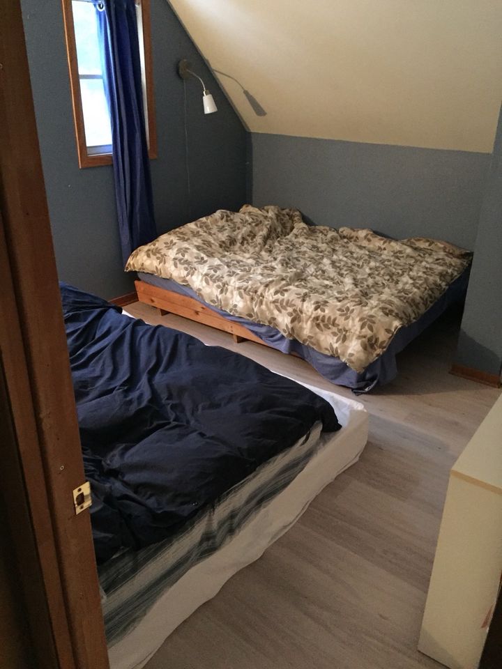 2 chambres, une salle de bain, salon, magnifique coucher de soleil.